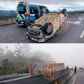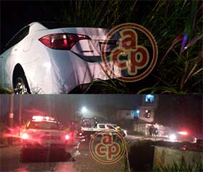Volcó su auto y terminó en charco de aguas negras, en autopista de Acayucan Conductor perdió el control presuntamente por el pavimento mojado, impactando el muro central Edgar Hernández |