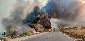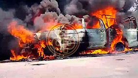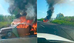 Veracruz, Ver., 24 de diciembre de 2025.- La mañana de este miércoles se reportó un automóvil incendiado en el Libramiento de Cardel, con dirección al puerto de Veracruz. |