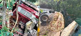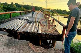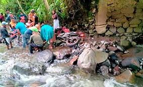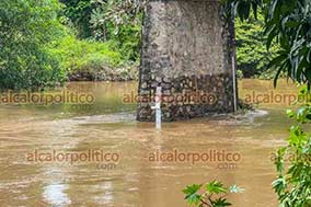 Camión cañero cae del puente sobre el río El Chiquihuite, en Atoyac - La cabina quedó a un lado del afluente y parte de la caña sobre el agua; el chofer salió ileso |