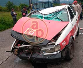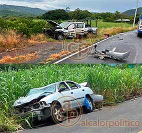 Aparatoso choque en carretera Sayula de Alemán-La Tinaja deja varios lesionados Auto particular presuntamente invadió el carril contrario e impactó de frente a un taxi Edgar Hernández |