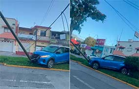 Automovilista pierde el control, se sube a camellón y choca con luminaria, en Xalapa Percance ocurrió frente al monumento a “Adalberto Tejeda”, en la avenida Xalapa con dirección a SEFIPLAN Hugo Cruz Ojeda |