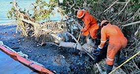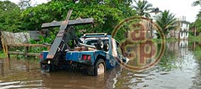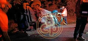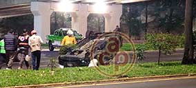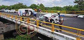 Medellín de Bravo, Ver., 5 de diciembre de 2025.- En la carretera Playa de Vacas-Medellín de Bravo, camioneta cayó al río Jamapa. Según el conductor, falla mecánica lo hizo perder el control e intentó esquivar a una persona, ocasionando se fuera hacia el agua. |