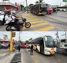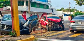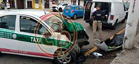 Taxi y camioneta chocan al evitar arrollar a motociclista que derrapó, en Xalapa - Percance se registró en la avenida Lázaro Cárdenas, cerca de la Estancia Garnica |