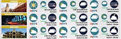 Domingo medio nublado; aumentarán lluvias y tormentas por Frente Frío - "Norte" con rachas frescas a fuertes en costas y descenso de la temperatura |