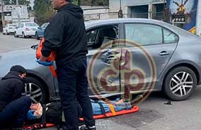 Xalapa, Ver., 13 de enero de 2026.- Chofer, adulto mayor, perdió el control de su taxi y se impactó contra los escalones del Cuartel de San José. Policías lo apoyaron, mientras que personal de Tránsito del Estado tomó conocimiento. Se desconocen las causas del accidente. |