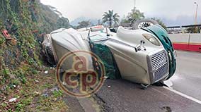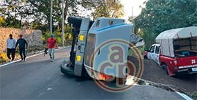 Volcó camión cargado de caña, en carretera de Amatlán de los Reyes Le ganó el peso al intentar incorporarse al acceso del ingenio “San Miguelito” Benito Juárez Ramírez |