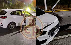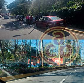 Xalapa, Ver., 6 de febrero de 2026.- En la avenida Lázaro Cárdenas, el conductor de un vehículo clásico perdió el control y se estrelló con la fachada de la CAEV. |
