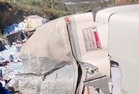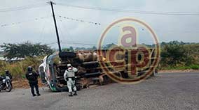 Casi al mismo tiempo, dos tráileres se accidentaron este viernes en Cumbres de Maltrata - Primero, entre la caseta de Esperanza y Mendoza, tractocamión que transportaba huevos volcó en curva; hubo rapiña |