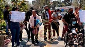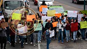 Xalapa, Ver., 13 de enero de 2026.- Empleados de la empresa LEIH bloquearon la calle Aguascalientes, en la colonia Progreso, frente a la clínica de Salud Mental, en demanda de sus pagos. |