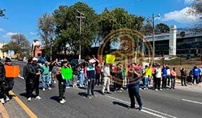Xalapa, Ver., 13 de enero de 2026.- Trabajadores de limpieza del CAE bloquearon ambos carriles de la avenida Ruiz Cortines para exigir pagos. |