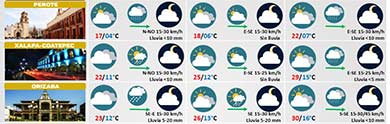 Sábado cálido, con periodos de sol prolongados y sin lluvias, en Veracruz Para el domingo, el frente frío 34 ocasionará lluvias, “norte” fuerte y ligero descenso de temperatura Protección Civil |