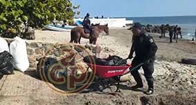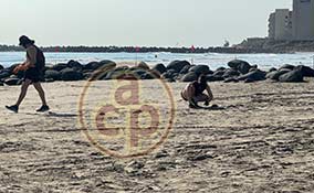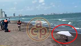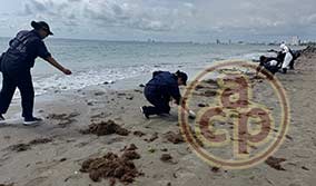 Alvarado, Ver., 24 de marzo de 2026.- Llama la atención presencia del delfín muerto en la playa frente al Fraccionamiento Lomas del Sol en la Riviera Veracruzana, al parecer asfixiado por la capa de chapopote que abarca grandes extensiones del Golfo de México. Personas afirman que es el de la semana pasada pero de ese, la gobernadora Rocío Nahle ya declaró que era falsa versión. |