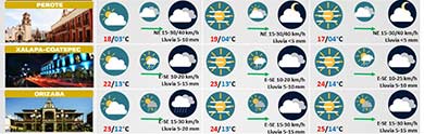 Prevén lluvias y lloviznas este jueves en zonas de montaña y sur de Veracruz - Persistirá calor diurno y de fresco a frío en noche-madrugada; posibles heladas en sierras |