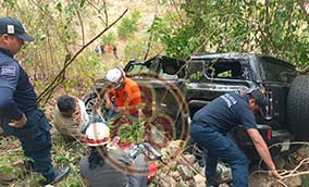 Camioneta termina en el fondo de barranco tras salirse del camino, en Apazapan - Percance, la tarde del martes en la carretera que conecta esta localidad con Jalcomulco |
