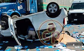 Trabajador de aseguradora volcó su auto en autopista de Nogales Volantes de la empresa Aseguradora Providence se esparcieron sobre el pavimento Jorge Reyes |