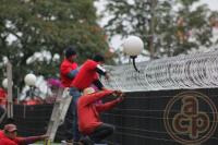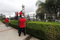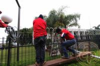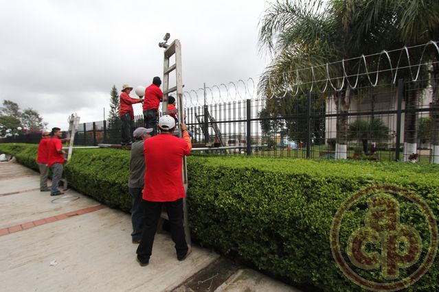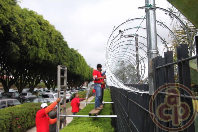 Xalapa, Ver., 19 de noviembre de 2014.- La mañana de este miércoles trabajadores colocaron cercas de alambre de púas alrededor de las instalaciones del Congreso del Estado.