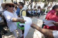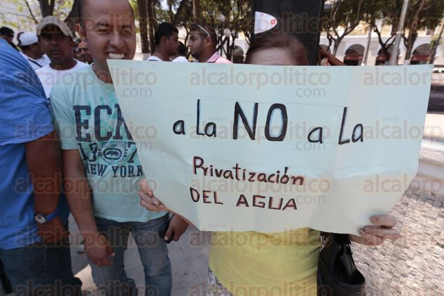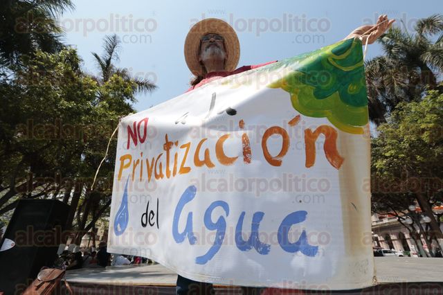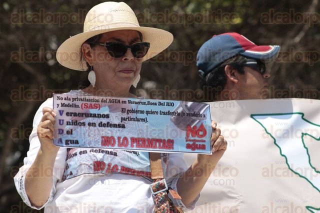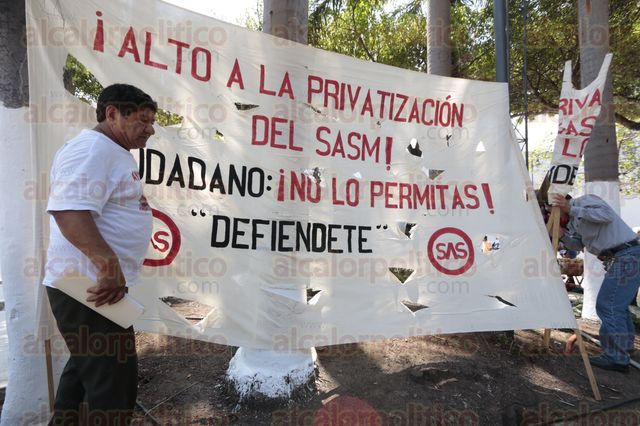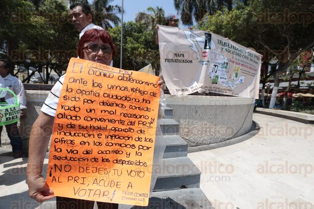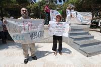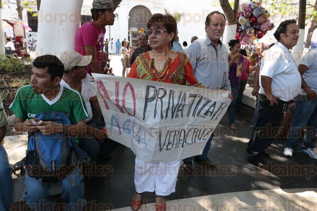 Veracruz, Ver., 9 de abril de 2015.- Diversos grupos de asociaciones civiles se reunieron este medio día en el zócalo de este Puerto para manifestarse en contra de la privatización del organismo SAS.