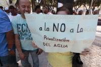 Veracruz, Ver., 9 de abril de 2015.- Diversas asociaciones civiles se reunieron en el Zócalo de este Puerto para manifestarse en contra de la privatización del SASM.