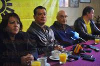 Xalapa, Ver., 5 de mayo de 2015.- En conferencia de prensa, Magno Garcimarrero candidato por la coalición PT-PRD por el distrito Xalapa Urbano, en compañía de Manuel Bernal y militantes del PRD, dio a conocer el valor de sus bienes personales.