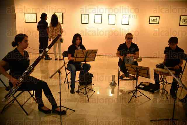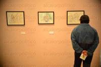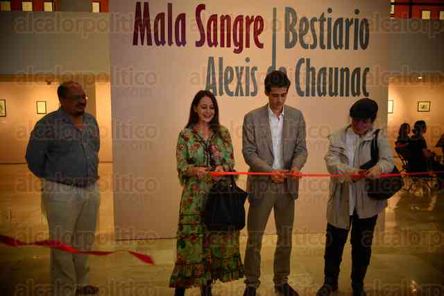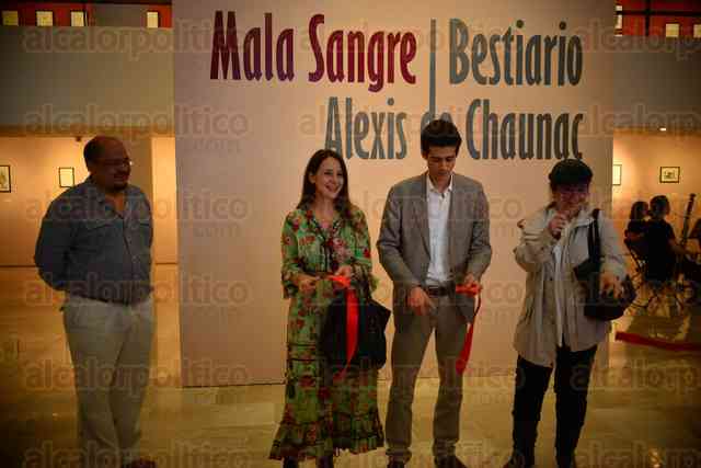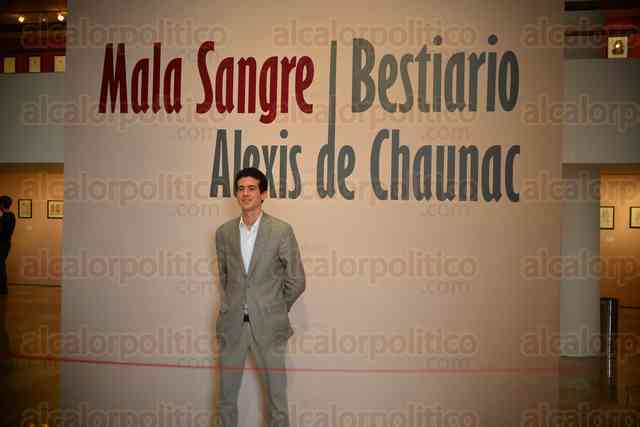 Xalapa Ver., 7 de mayo de 2015.- Inauguración de la muestra "Mala Sangre/Bestiario" obra de Alexis Chaunac, quien estuvo acompañado por su madre Mariana Cuevas. La exposición se encuentra en la pinacoteca “Diego Rivera”.
