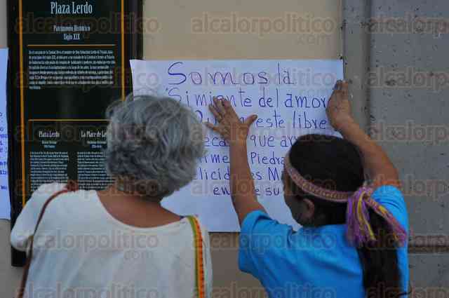 Xalapa, Ver., 13 de mayo de 2015.- Un par de mujeres marianas se manifestó en Plaza Lerdo con el fin de compartir un mensaje religioso y de libertad de expresión.