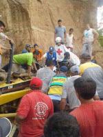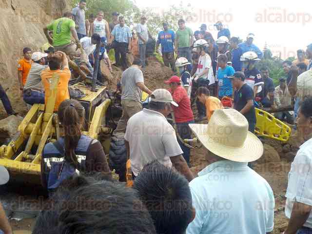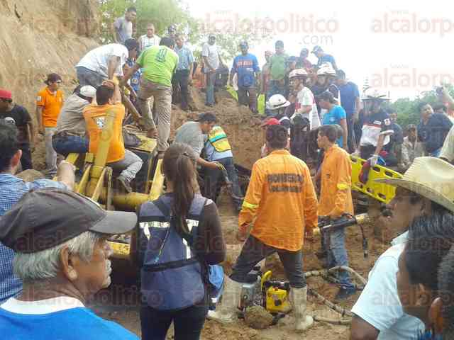 Tlapacoyan, Ver., 12 de agosto de 2015.- Cerca de las 16:00 horas de este miércoles, a la altura de la congregación de La Palmilla, acudieron paramédicos y elementos de auxilio a rescatar al joven Jaime López que se encontraba bajo un alud de tierra.