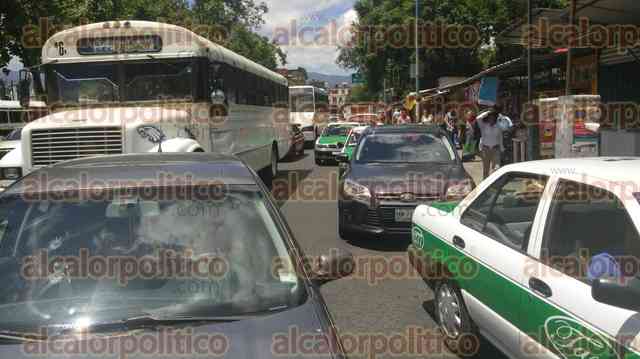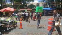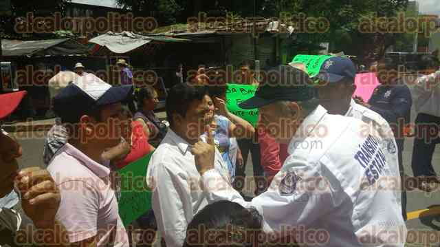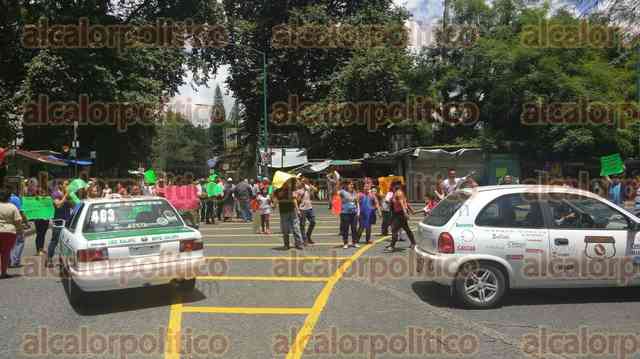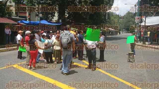 Xalapa, Ver., 7 de septiembre de 2015.- Comerciantes de "Los Sauces" causan tremendo caos vial al bloquear la esquina de Mora Beristain y 7 de Noviembre, frente a la clínica 66 del IMSS, por el cambio de sentido; dicha modificación, aseguran, les está ocasionando bajas ventas.