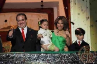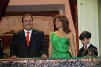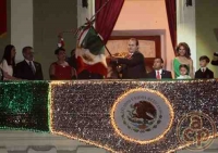 Xalapa, Ver., 15 de septiembre de 2011.- En punto de las once horas, el gobernador Javier Duarte de Ochoa acompañado de su esposa, Karime Macias de Duarte salió al balcón central de Palacio de Gobierno donde dio el tradicional Grito de Independencia por el 201 aniversario, ante xalapeños que se dieron cita desde temprana hora en la Plaza Lerdo. El show musical estuvo a cargo de la cantante Lucero quien después de algunos problemas técnicos salió interpretando un popurrí de éxitos así como temas nuevos.