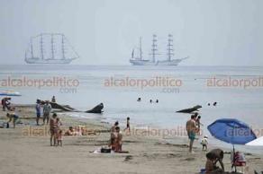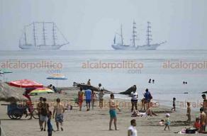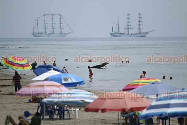 Veracruz, Ver., 26 de agosto de 2018.- Los veleros que participarán en el Festival Velas Latinoamérica 2018, llegaron a este Puerto y se encuentran fondeados junto a la Isla de Sacrificios.