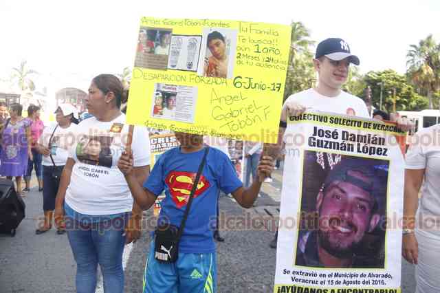 Veracruz, Ver., 30 de agosto de 2018.- Integrantes del Colectivo Solecito se reunieron la tarde de este jueves para marchar por el Centro de la ciudad y conmemorar el Día Internacional de las Víctimas de Desaparición Forzada.