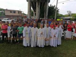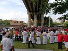 Coatzacoalcos, Ver., 1 de septiembre de 2018.- Por el Día del Migrante, este sábado la Pastoral de Movilidad Humana de la Diócesis de Coatzacoalcos celebró en el puente Avenida Uno, una misa, actividades culturales y recreativas para migrantes que pasan por este municipio.