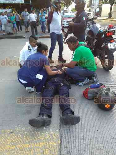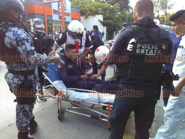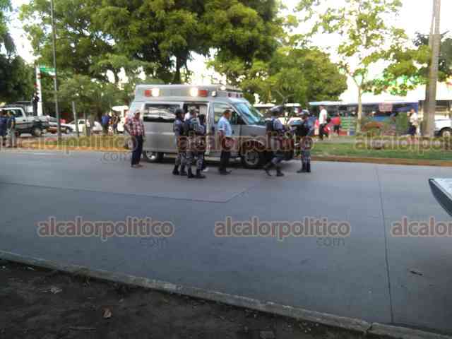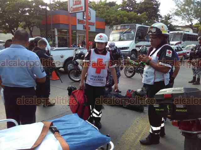 Veracruz, Ver., 20 de septiembre de 2018.- En la colonia Centro, una ambulancia de la Marina impactó a un motopatrullero de la SSP y lo dejó con algunos golpes. Se movilizaron Cruz Roja, Policía Naval y Estatal.