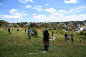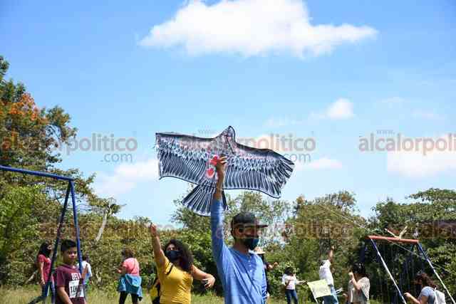 Xalapa, Ver., 30 de agosto de 2020.- Vecinos del Parque La Loma se reunieron para recolectar firmas y evitar la construcción de un cuartel de la Guardia Nacional, salieron a convivir y volar papalotes.