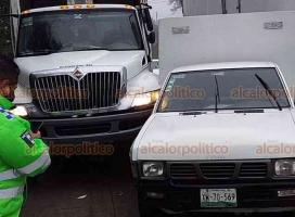 Camión impacta a camioneta que invadió su carril, en la Xalapa-Coatepec