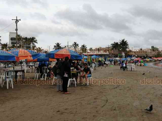 Veracruz, Ver., 16 de enero de 2021.- Aunque con menor concentración en comparación con otros fines de semana y pese al mal tiempo, sí hubo afluencia de visitantes en las playas del municipio.