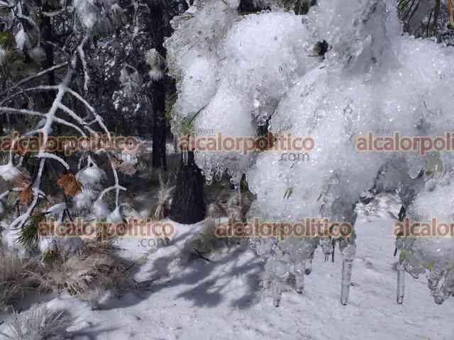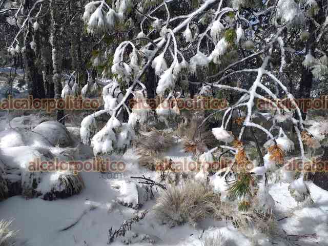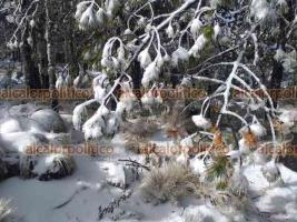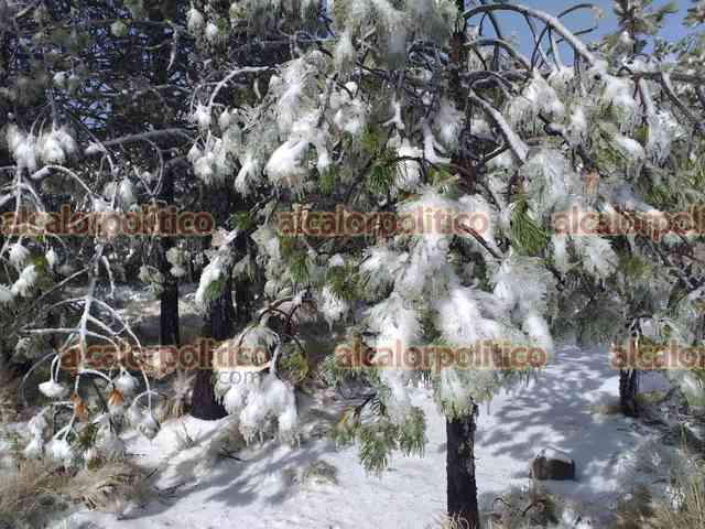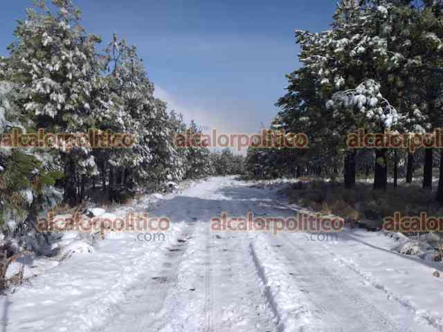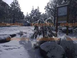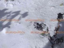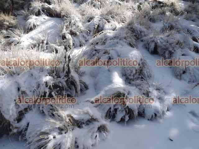 Perote, Ver., 11 de enero de 2022.- Tras la primera nevada de este lunes que provocó el paso Frente Frío número 21, el Cofre de Perote se pintó de blanco y las autoridades implementaron un operativo para la llegada de turistas a la zona.