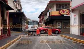 Cierran calle tras reparación y para evitar accidentes, en Xalapa