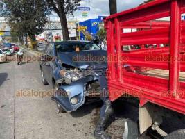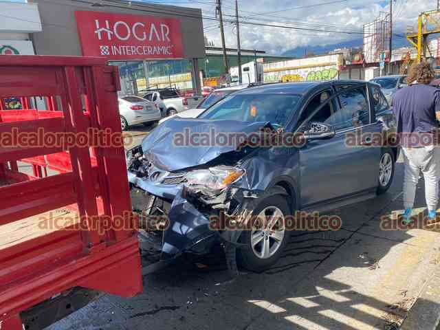 Xalapa, Ver., 13 de enero de 2022.- Camioneta Toyota chocó por alcance contra otra unidad de redilas, esto sobre la avenida Lázaro Cárdenas casi esquina con Ismael Cristen; no hubo lesionados.