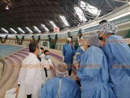 Orizaba, Ver., 13 de enero de 2022.- Este jueves comenzó a operar el Macro Módulo de Atención Respiratoria del IMSS, en el Coliseo La Concordia. A derechohabientes con síntomas de Coronavirus se les hace prueba rápida para confirmar el contagio.