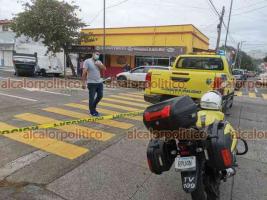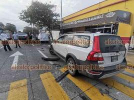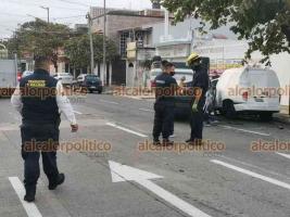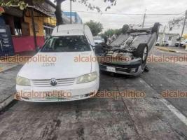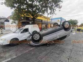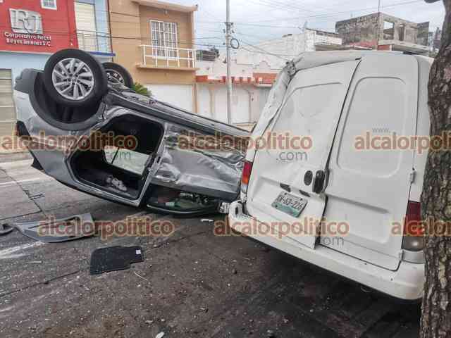 Colisión de tres vehículos termina en volcadura de uno, en Veracruz Puerto