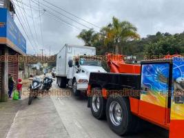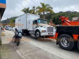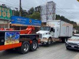 Xalapa, Ver., 14 de enero de 2022.- En la carretera Xalapa-Coatepec, a la altura de Los Arenales, Fuerza Civil detuvo a chofer de camión por ultrajes a la autoridad. Al lugar llegaron afiliados de la AMOTAC que lograron que el vehículo fuera liberado. Esta situación complicó por varios minutos la circulación hacia la Capital.