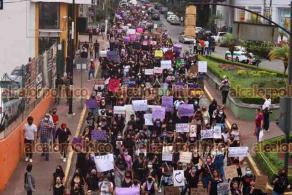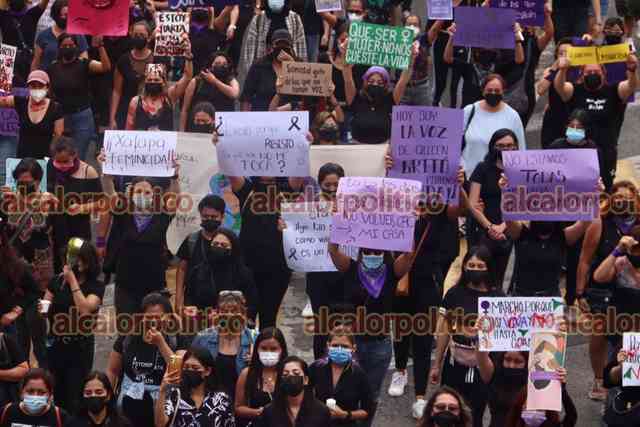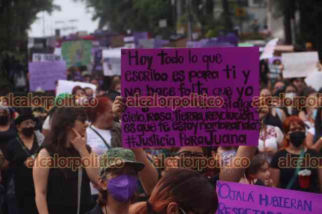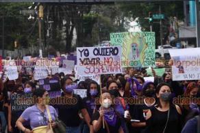 Xalapa, Ver., 24 de abril de 2022.- Cientos de mujeres volvieron a tomar las calles de la Capital, ahora impulsadas por el reciente asesinato de la también feminista Juana Ovando.