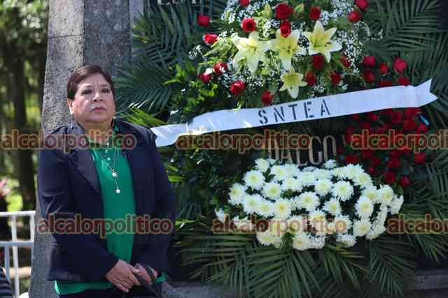 Xalapa, Ver., 21 de septiembre de 2022.- Beatriz Elena Flores Núñez secretaria general del Sindicato Nacional de Trabajadores de Educación para los Adultos (SNTEA), acompañada por integrantes del sindicato realizaron guardia de honor ante el monumento a Miguel Hidalgo y Costilla.