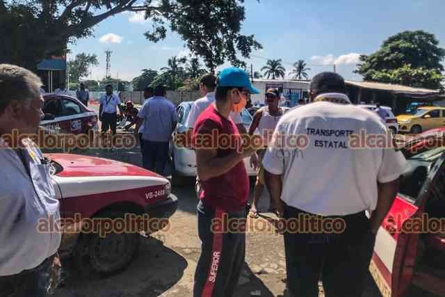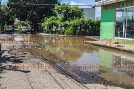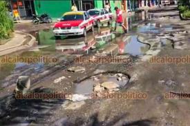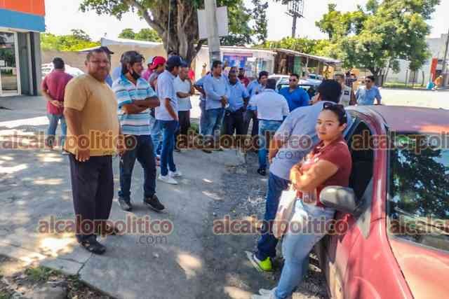 Veracruz, Ver., 22 de septiembre de 2022.- Hartos de los grandes baches y agua anegada en la zona, taxistas exigen rehabilitar la avenida Azteca, en la entrada al fraccionamiento Palma Real.