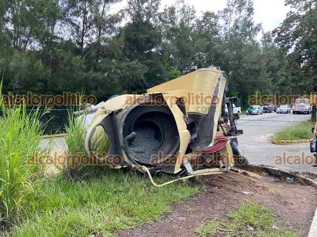 Vuelca revolvedora, en Xalapa; en el bulevar hacia Central de Abastos