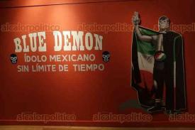 Ciudad de México, 17 de octubre de 2022.- En el Museo del Estanquillo, se inauguró la exposición “Blue Demon, ídolo mexicano sin límite de tiempo”, máscaras de las leyendas de la lucha libre, carteles cinematográficos, cuentos, novelas, muñecos, entre otros artículos, de la colección Carlos Monsiváis.
