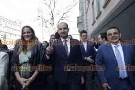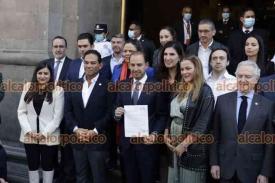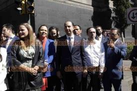 Ciudad de México, 23 de enero de 2023.- El dirigente del PAN, Marko Cortes y el presidente de la Cámara de Diputados, Santiago Creel, junto a legisladores y alcaldes panistas, también interpusieron recurso de inconstitucionalidad por “Plan B”.