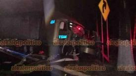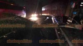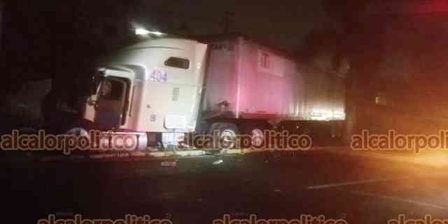 Emiliano Zapata, Ver., 26 de enero de 2023- Tráiler se salió de la carretera y chocó contra palmera, en la carretera Xalapa-Veracruz a la altura de El Lencero. Paramédicos de PC Municipal atendieron al conductor por una lesión en la mano izquierda.