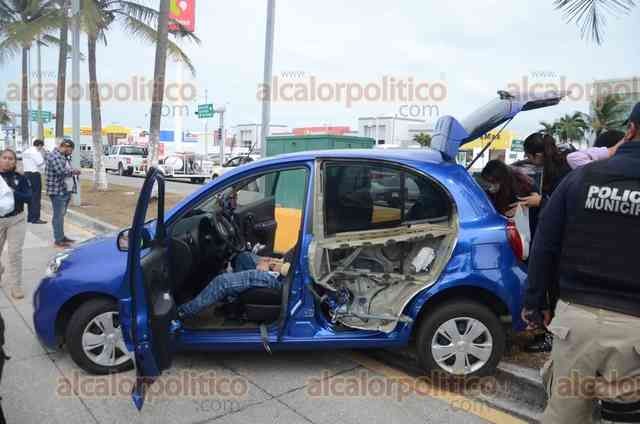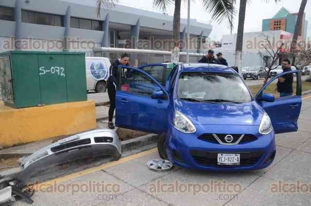 Veracruz, Ver., 27 de enero de 2023.- Una mujer huyó en su automóvil Jetta luego de pegarle a otro vehículo en el bulevar Ruiz Cortines. No obstante, la responsable dejó parte de su defensa con todo y placas en el sitio.