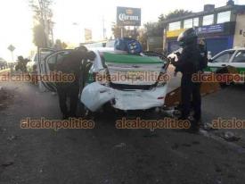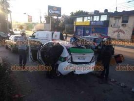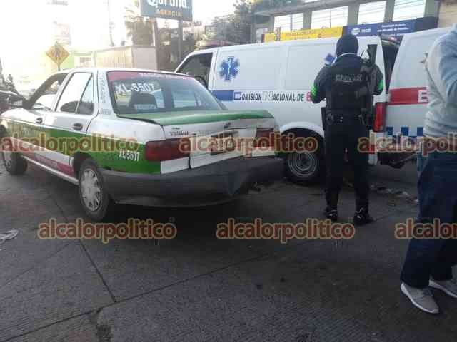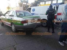 Xalapa, Ver., 30 de enero de 2023.- Camioneta y dos taxis chocaron por alcance en la avenida Lázaro Cárdenas a la altura del semáforo de La Corona. Hubo dos lesionados que fueron trasladados a un hospital.